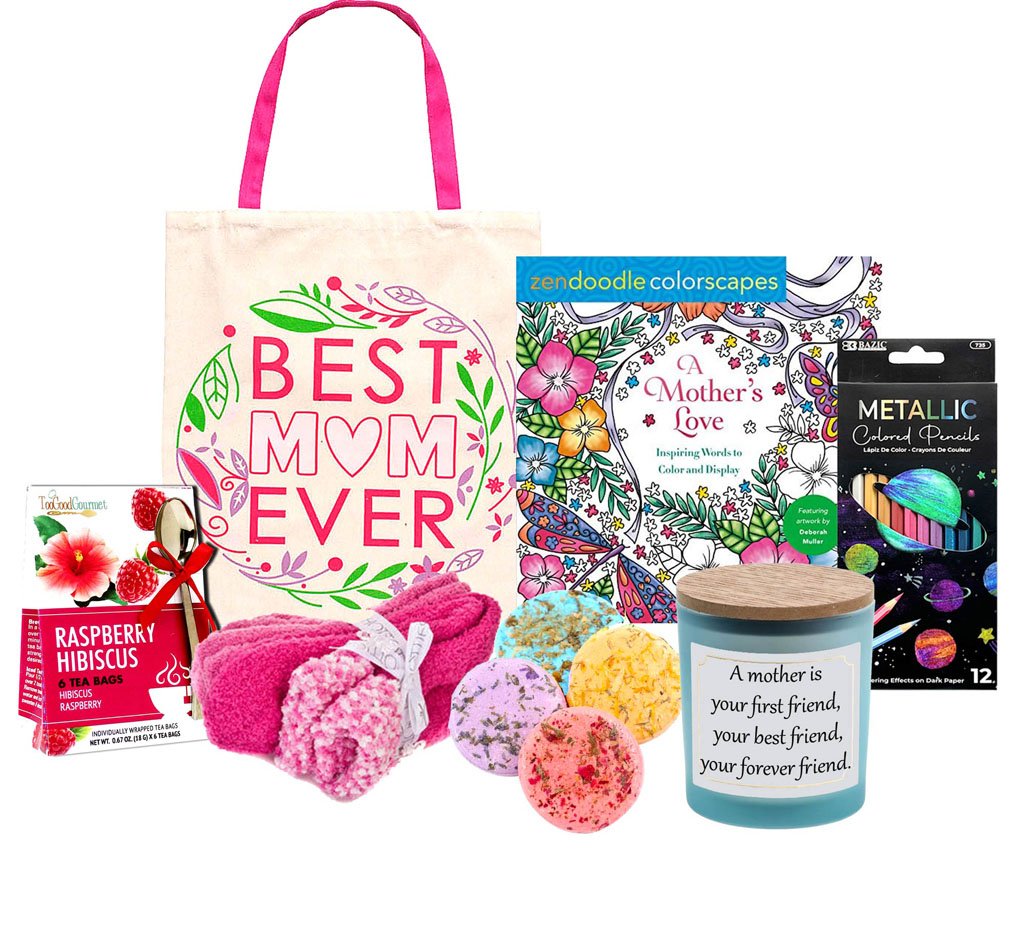Inside the Best Mom Ever Coloring Tote, she’ll discover everything she needs for a relaxing day at home: a hand-poured candle to set the mood, a Mother’s Love coloring book with colored pencils for creative downtime, raspberry tea with a spoon for cozy sipping, and soft, comfy socks to keep her warm. For a spa-like touch, we’ve also included four refreshing shower fizzers. Every detail makes this Mother’s Day gift tote for Mom both practical and heartfelt.