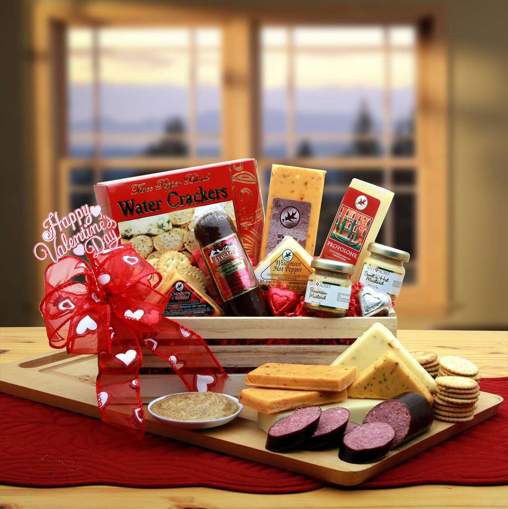 Surprise your Valentine with Valentines Signature Sausage Crate containing salty treats and delicious cheeses! The Valentine’s Signature Sausage Crate delivers an unforgettable tasting experience filled with artisanal cheeses, premium sausage, and gourmet crackers, all elegantly presented in a rustic pine crate. Show your love with a unique Valentine’s Day gift for him or her that combines flavor, charm, and thoughtful presentation.